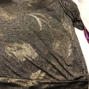 This is the most interesting top. It has an overall gold shimmer and in the right light you can make out that the shimmer comes from a metallic gold feather pattern.