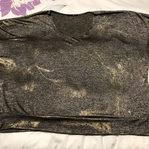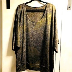 Plus size 4X MXM Metallic Print Knit Blouson Top Batwing Sleeves Black/Gold