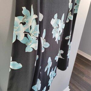 Plus size Clientele Black dress with green floral design. Lots of stretch.