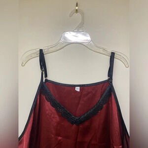 Plus size Women’s 2X Red Silk Dress with Black Lace and Adjustable Straps soft