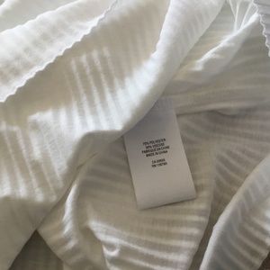 It’s supposed to be crinkled at the bottom. The shirt is rather short- perfect for wide shoulders, but will expose fupas and longer torsos. Fabric is thin and soft.