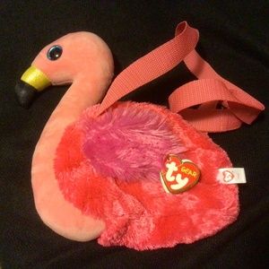 Plush stuffed animal collectible toy purse with an ajustable strap.