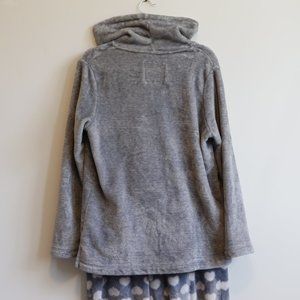 Plush Denver Hayes women's pajama set. Top is a wide-neck turtleneck, bottoms have a drawstring.