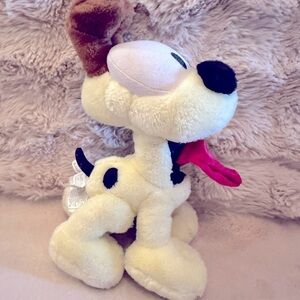 Adorable original Odie the dog toy featuring a vibrant red satin tongue. Perfect for cuddling and playtime.