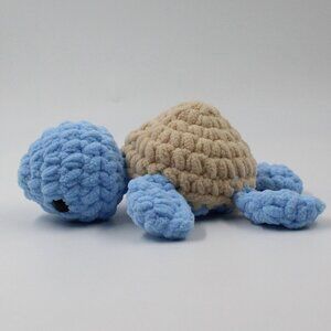 Plush Polyester Blue and Tan Crochet Amigurumi Turtle