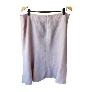Studio Plus pre-loved light pink linen knee length features a flattering trumpet style, perfect for any occasion. Made from 100% linen, this skirt is both comfortable and chic, making it a versatile addition to your wardrobe. The light pink colour adds a pop of fun to your outfit, while the lining ensures a smooth and polished look every time you wear it.