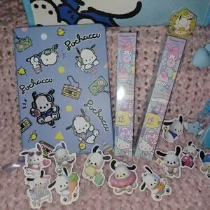 The note book is so cute! It has a raised decal on the front and pages that feature his faded image. There are 2 blind box pens that accompany the book. What character will you get? The cartoon style stickers are avaliable for any surface... the book, phone, laptop etc.