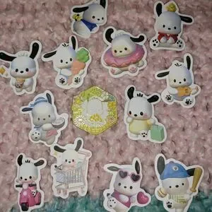 This is a sweet little group for the Pochacco fans. The bag is made with PU leather and feels very supple. Because it is an authentic Sanrio piece, the bag is well made with a beautifully rich graphic on the front.