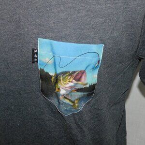 Poches & Fils Mens L Dark Gray Nagano Cane Pocket T-Shirt Bass Fishing