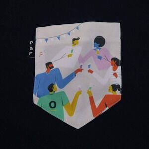 Poches & Fils Navy Graphic Pocket T-Shirt Size M – Quebec Made – Party Design