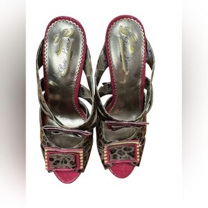 Poetic Licence Moonlight Dancer Heel Leopard/Floral Leather Size 10 EUC