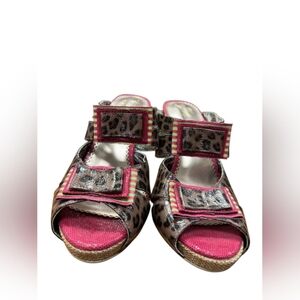 Poetic Licence Moonlight Dancer Heel Leopard/Floral Leather Size 10 EUC