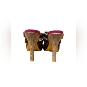 Leopard and floral heel pink/Brown/green/silver/yellow has 2 bows on each heel open toe leather slip on with slight elastic