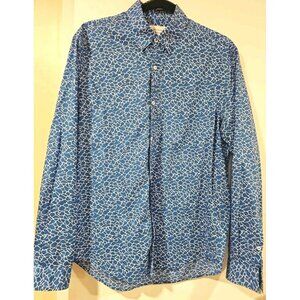 Poggianti 1958 Button Up Long Sleeves Shirt Men's 40 15 3/4 Abstract Blue White