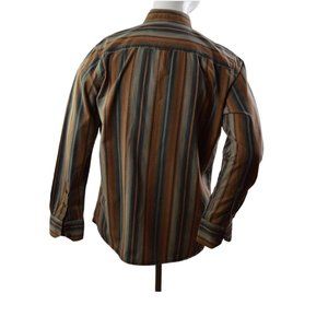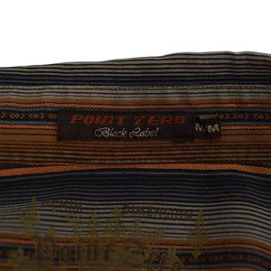 Point Zero Black Label MEN sz M Long Sleeves Shirt Orange Brown Gray Stripes