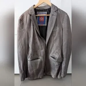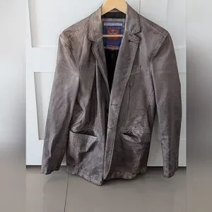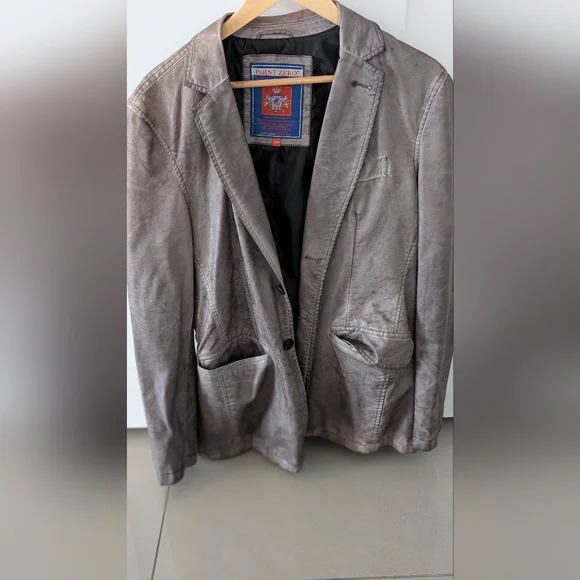 Unique piece, distressed grey leather blazer. Stylish leather blazer by Point Zero Collection. (Very rare piece) Ideal for smart-casual events. Size small however, fits a medium. condition is 9/10. Worn a handful of times.