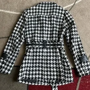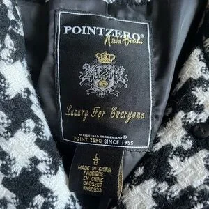 Size large Point Zero jacket with belt. Small stains on the back near collar (pictured). Tagged as large, but fits more like a size SMALL as it was taken in