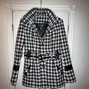 This Nicole Benisti for Point Zero Wool coat is gorgeous and features a classic and timeless black and white houndstooth pattern. It is NWOT and in Excellent Condition!