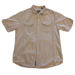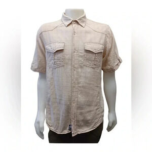 Point Zero Linen Blend Beige Short Sleeve Button Down Shirt Size Large