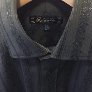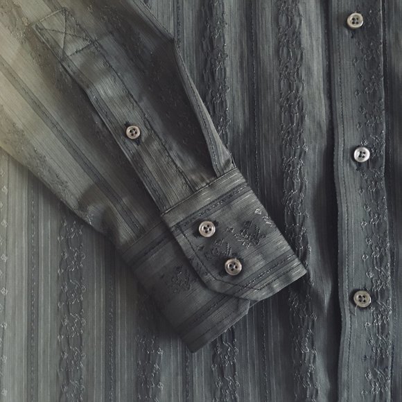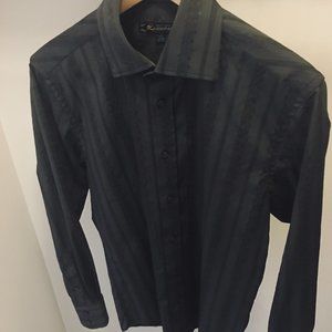 Point Zero Luxury Men's Motif Midnight Grey Dress Shirt