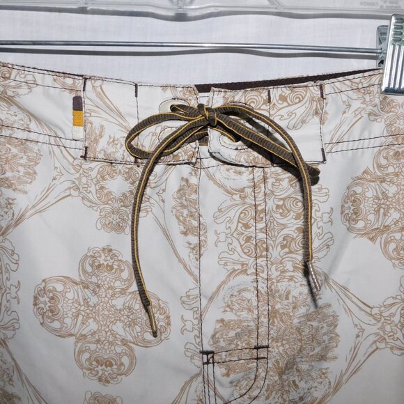 Point Zero Mens L Cream Brown Patterned Lined Paradise Island Board Swim Shorts