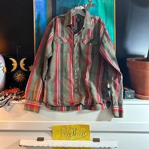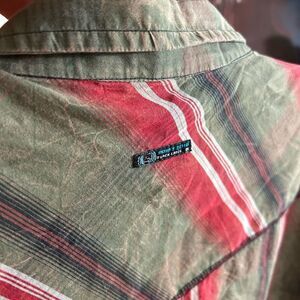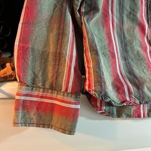 Point Zero Men's Red and Tan Striped Casual Shirt XL