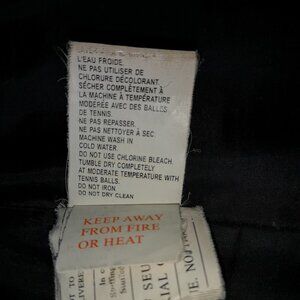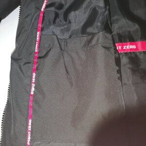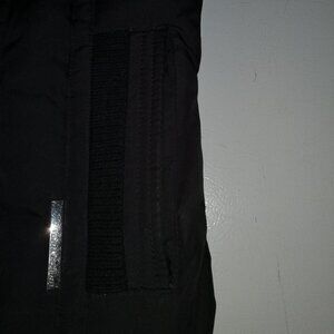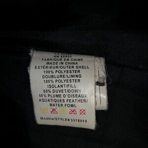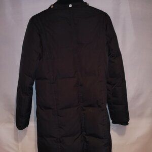 Size small Black Nicole Renisti Knit collar & cuffs Full Zip 2 front slash pockets 2 Velcro inside pockets Outer shell - 100% Polyester Lining - 100% Polyester Fill - 50% Down / 50% Water Fowl Feathers Excellent condition - hood is missing though.