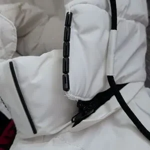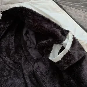 Very warm faux fur inside torso jacket with pocket. Removable hood with zip. Zips are good. Front pokets are wind resistant.