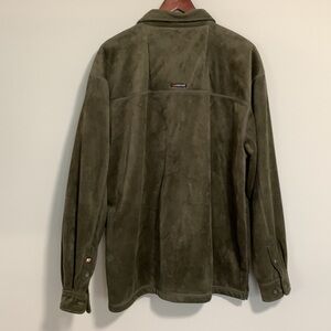 Full front button / 2 front buttoned breast pockets / outside velour feel with interior fleece feel - 100% polyester