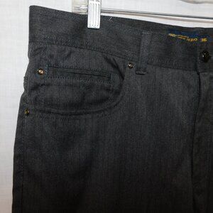 This pair of Mens 36 Point Zero Stretch Charcoal Gray Pinstripe Pants are in Excellent clean bright condition. Pants are 60% Cotton - 40% Polyester -= Machine washable.