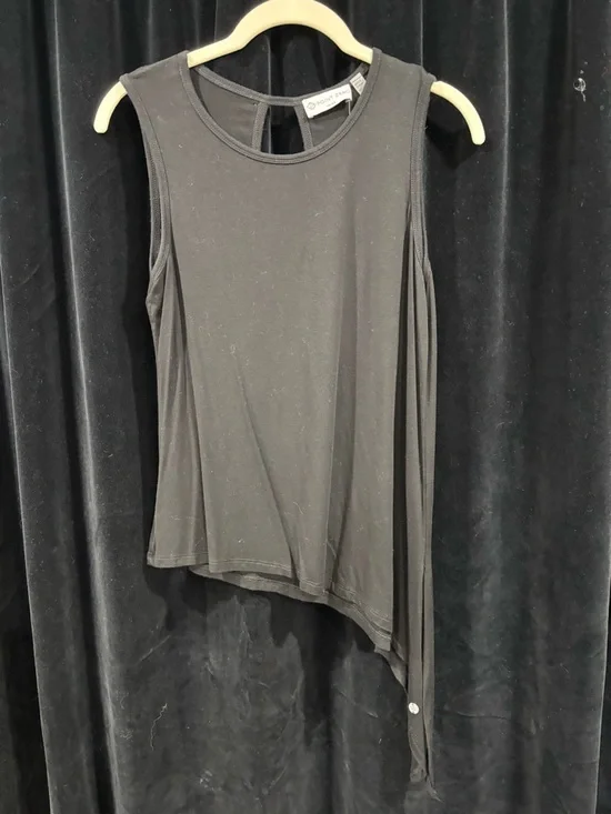 Point Zero black sleeveless asymmetrical top with keyhole backing, size XS. Ptp 18” T337