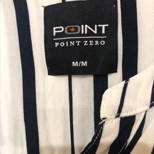 Point Zero White & Navy Blouse w/cuffed sleeves