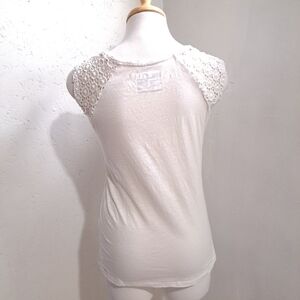 Point Zero | White colorful Mandela boho sleevless shirt lace details. women's size small pre owned. lightly used condition. no noticeable flaws