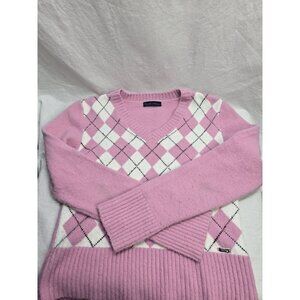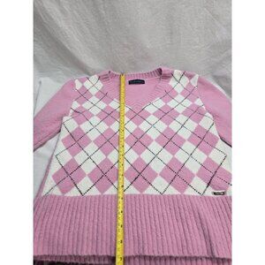 Point Zero XL Nicole Benisti Pink And White Argyle Sweater- Y2K- XL fits Smaller