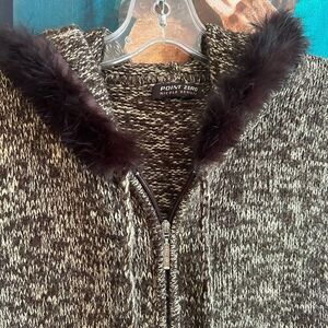 Point Zero Y2K Brown Hooded Cardigan W Faux Fur Trim L