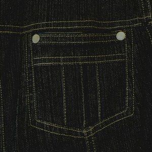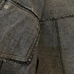 Nice black denim shirt jacket, medium. Dark charcoal color, and due to denim fabric shows texture rather than solid black. Very little wear to this garment. About 23.5 inches shoulder to waist. Message for additional measurements if needed. Has a boho street vibe but also can work with a more chic look.