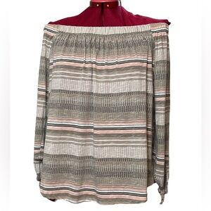 Medium weight knit, knotted sleeve opening. Fabric tag is missing but most likely a poly/cotton blend.