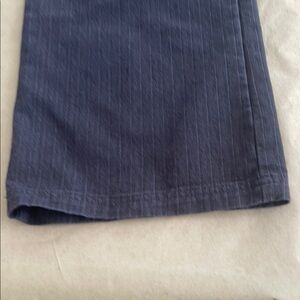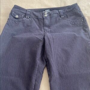 Chic gray pinstripe pants with button details. Perfect for a sophisticated look.