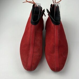 Pointer Red Suede Side Zip Booties with Back Lace Up