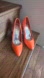 Pointy toe orange patent heels