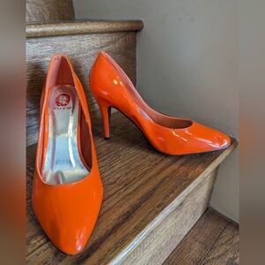Pointy toe orange patent heels by Red circle. Women's size 10