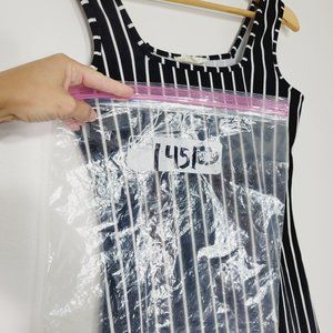 Poison Ivy Sleeveless Sheath Dress Bodycon Black White Striped Scoop Neck S