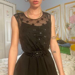 Pokadot sequin 1950s retro style little black dress with tie waist!