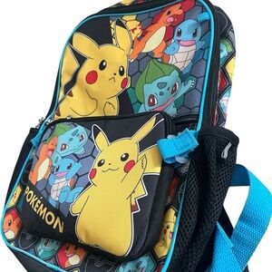 Colorful Pokemon backpack featuring Pikachu and friends. Perfect for fans. Includes detachable pencil case. New condition