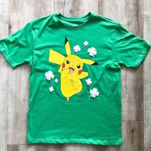 Pokemon, Pikachu, Green, St. Patrick's Day, Shamrock, T Shirt, Youth, XL, NEW