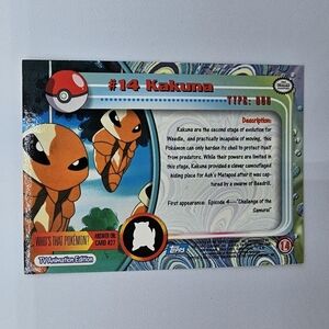 Pokemon TOPPS 1999 Kakuna #14 Blue Logo TV Animation Edition Card - in excellent condition.