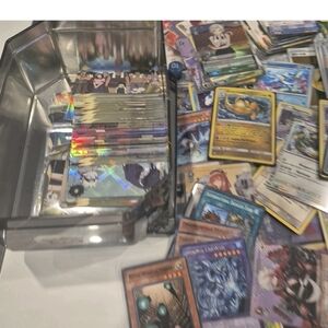 Diverse Pokemon card collection. Features vibrant designs and characters. Ideal for fans and collectors.