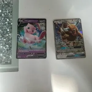 Collection of Pokemon trading cards. Features vibrant multicolor designs. Includes various Pokemon characters.