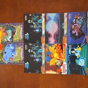 Set of colorful Pokemon coins featuring various designs. Includes gold, blue, green, purple, and orange coins.