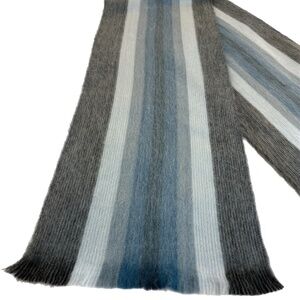 Soft, airy, and beautifully made, this Pokoloko Artisan Alpaca Series scarf features subtle ombré stripes in cool tones of grey, blue, and cream. Hand-loomed by indigenous artisans in Ecuador’s Andean mountain region, it’s crafted from a luxurious alpaca blend that’s warm, breathable, and non-itchy. Elegant, versatile, and naturally hypoallergenic.